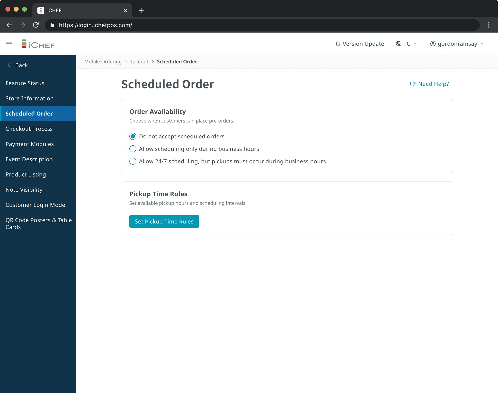 Restaurant owners needed a low-effort way to enable scheduled ordering. I evaluated whether a dedicated onboarding flow would justify the development investment and chose a lean activation approach instead, using a single Scheduled Orders configuration page for both setup and adjustments.