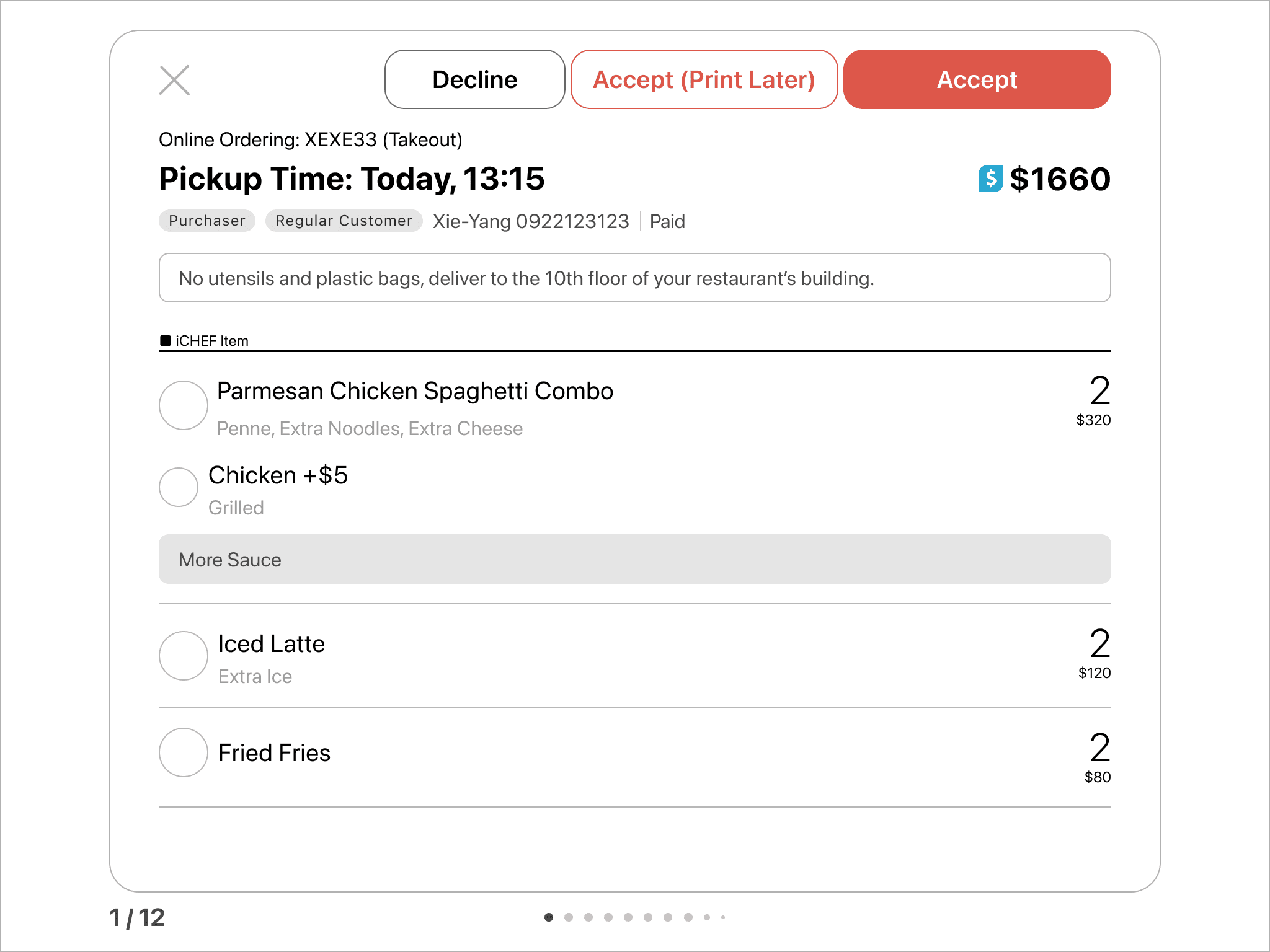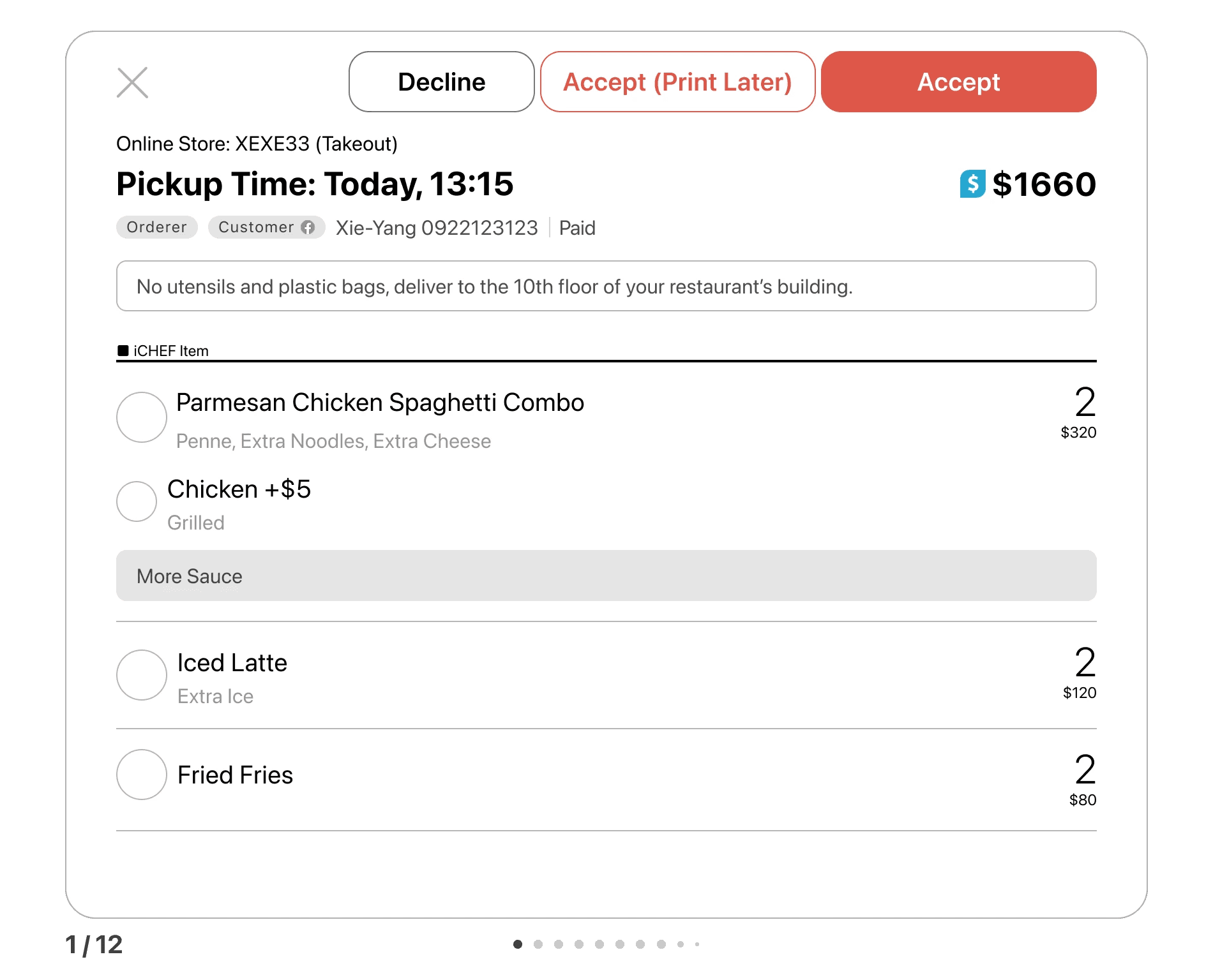 Based on research showing that restaurant operations vary widely, I made the Print Later button configurable and available by default to all restaurants, not just those using scheduled orders, to support adoption.